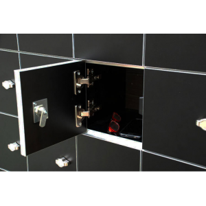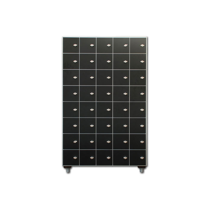 Safe Deposit Box available in the 40-seat version. Structure in 100% fir melamine and 18mm thickness. Dimensions of the structure 164,3X103,4X25 cm, module 20x20. Compartment size 831x1034x250mm. 1.2mm thick ABS edging. Lock in chromed steel with padlockable mechanism or with key. Structural support in solid wood with a thickness of 3.3cm able to withstand all the stresses of the structure. Support foot in polypropylene. Wenge base color, further colors are available on request.