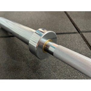 The Gatepro Chrome Olympic Barbell is used in training where the athlete's goal is to increase their muscle strength and physical endurance. Suitable for rack, bench and bodyweight workouts. The Chromed Olympic Barbell has a length of 180cm, with bronze bushings, the diameter of the handle is 28mm and the maximum loadable weight is 320kg. It has a knurled surface which acts as a non-slip in this way makes the grip tighter and more secure. The barbell weighs 14kg.