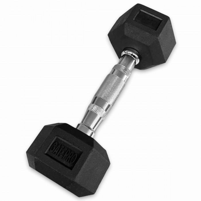 Il nostro Manubrio Esagonale Gatepro, ha una testa fissa a forma esagonale, realizzata in gomma inodore di colore nero, in questo modo è più pratico per essere poggiato sul pavimento o su altra superficie in quanto la testa esagonale conferisce più stabilità. L'impugnatura è cromata e zigrinata, cosicché la presa risulti più sicura e compatta, la presa è antiscivolo per evitare che col sudore il manubrio possa sfuggire dalle mani. Il manubrio è utilizzabile in ambiente interno ed esterno e in ogni tipologia di allenamento, dal bodybuilding, al corpo libero e altro.